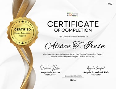 If you are struggling with any piece of this process, you are not alone. If you want a real person, not simply more content, I'm here to support your journey as an ethical vegan thriving in this non-vegan world. I won't tell you what to do or think. Instead, I'll listen without judgement and lead you into deeper discoveries that will take you where you want to go. I think the tide is turning because we are turning it, the culture is changing because we are changing it, and the time is just right to go vegan with me.